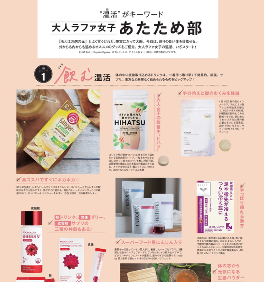 大人ラファーファ11月号 大人ラファ女子 あたため部”温活”がキーワードにて、natoha黒人参茶が紹介されました。